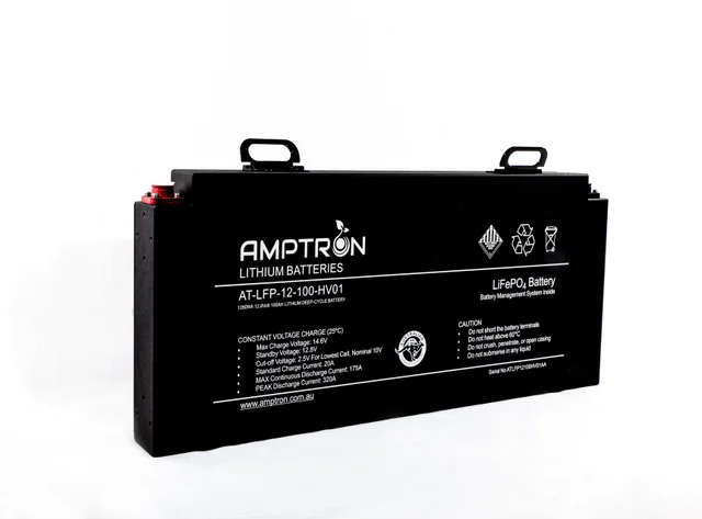 Picture of 12VOLT 100AH / 100A BMS / 1280WH CAPACITY AMPTRON SLIMLINE LIFEPO4 BATTERY - VERSION 2 - IP50 RATING