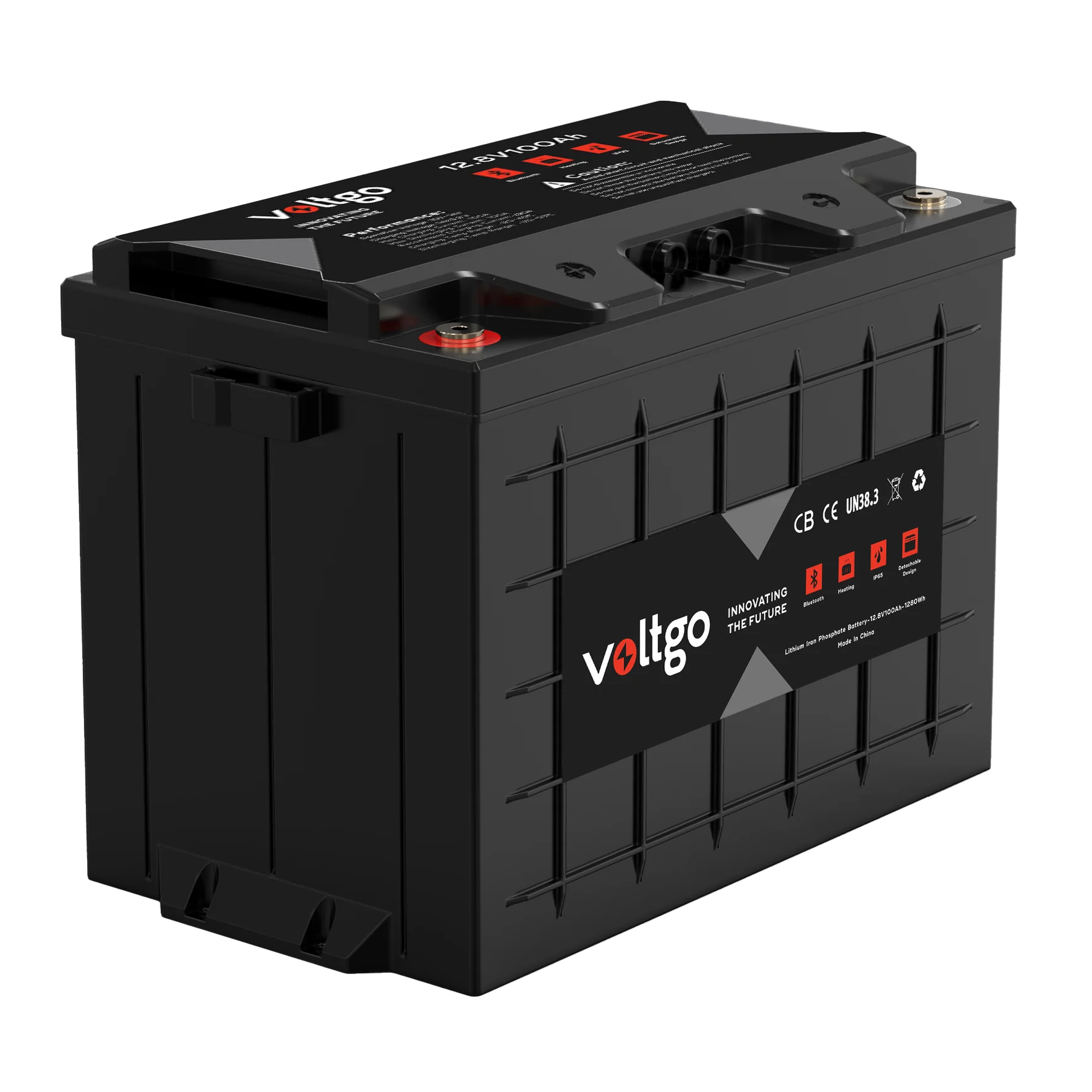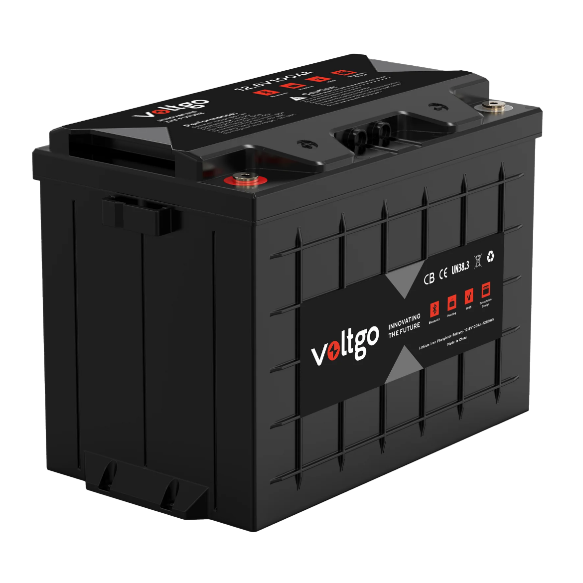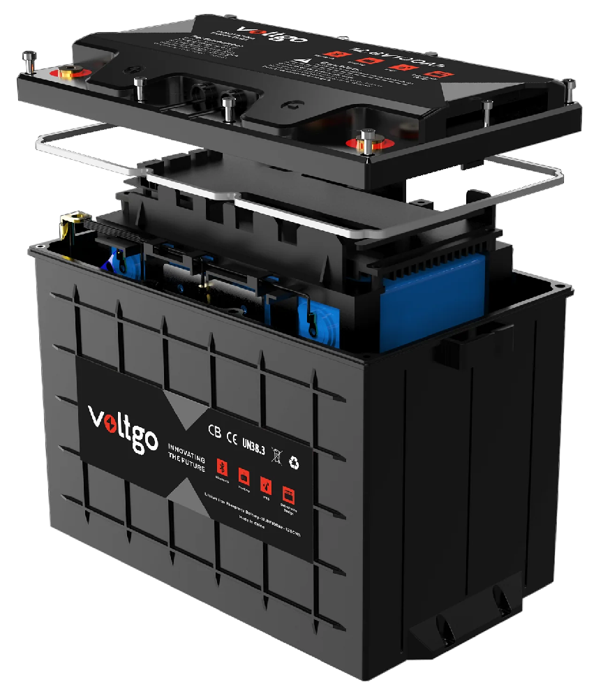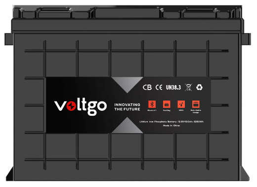 12.8V 100AH 1280WH LIFEPO4 IP65 RATED VOLTGO BATTERY WITH BLUETOOTH AND SCALABILITY UP TO 5.12KWH SYSTEMS
