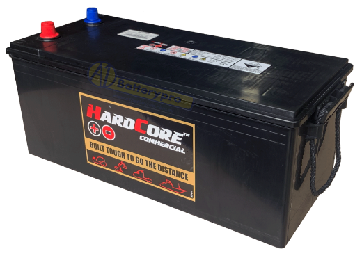 12V 950CCA 143AH HARDCORE LOW MAINTENANCE COMMERCIAL TRACTOR BATTERY - RHP (WITH BOTTOM HOLD DOWN LEDGES)