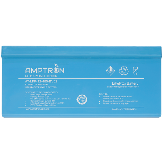 • 12VOLT 400AH / 175A BMS / 5376WH CAPACITY AMPTRON LIFEPO4 BATTERY - VERSION 2 - IP65 RATING