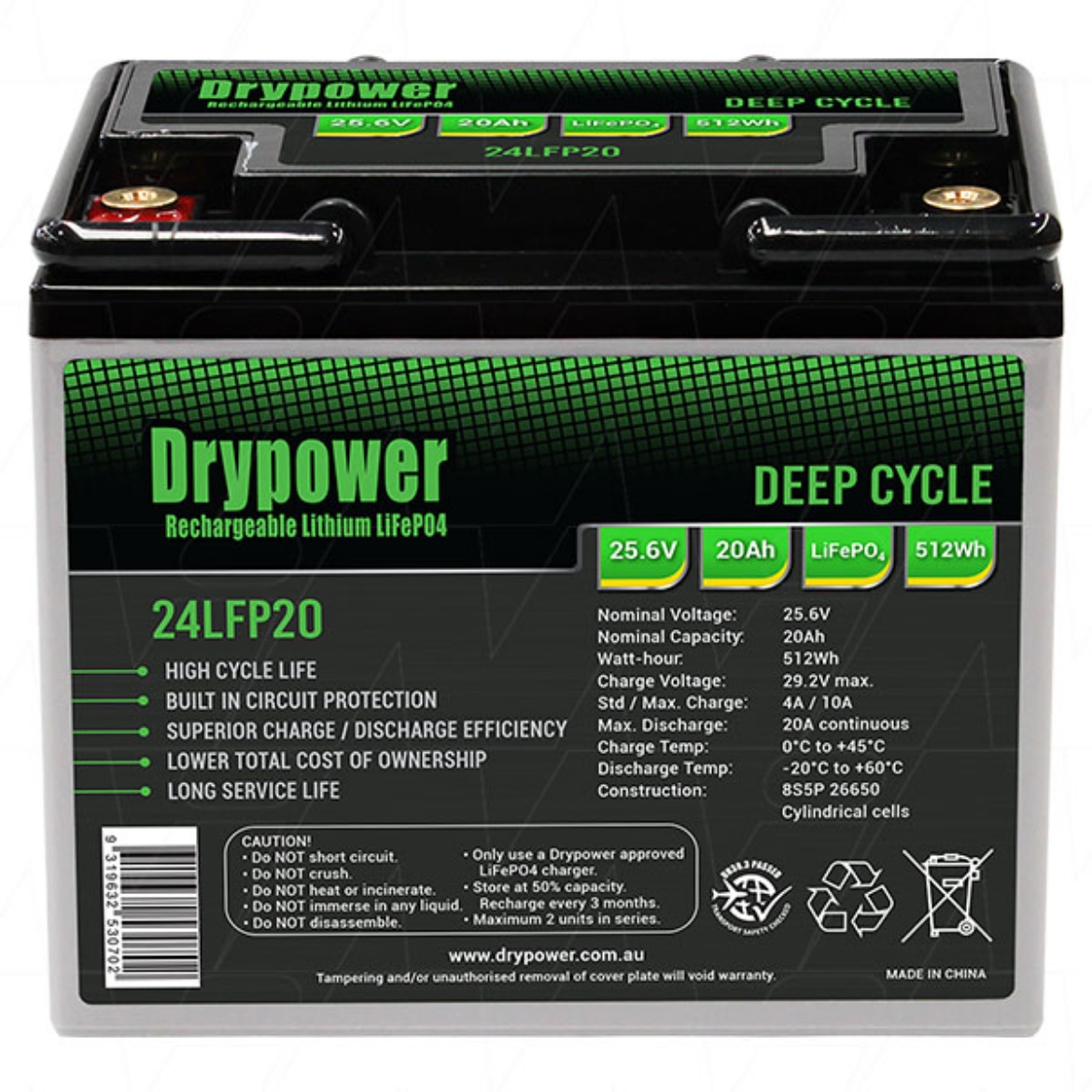 25.6 VOLT 20AH / 20A BMS / 512WH CAPACITY DRYPOWER LIFEPO4 BATTERY - IP65 RATING