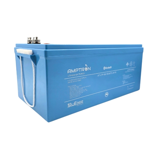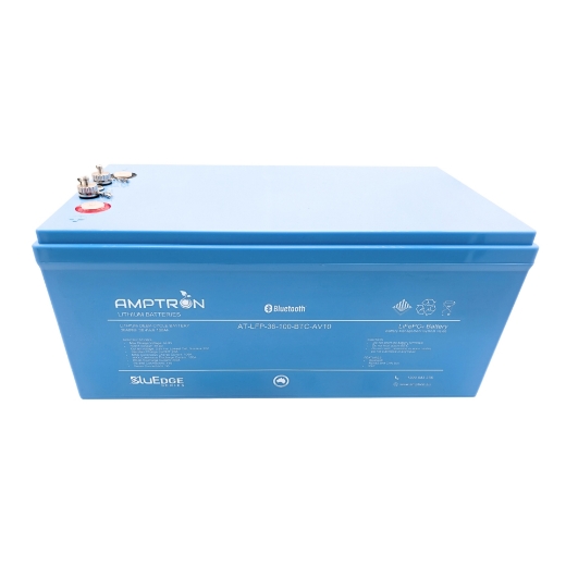 36 VOLT 100AH / 100A BMS / 3840WH CAPACITY AMPTRON BLUEDGE LIFEPO4 ABS BATTERY WITH BLUETOOTH & DATA COMMS - IP67 RATING