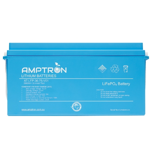 36VOLT 75AH / 100A BMS / 2880WH CAPACITY AMPTRON LIFEPO4 BATTERY - IP65 RATING
