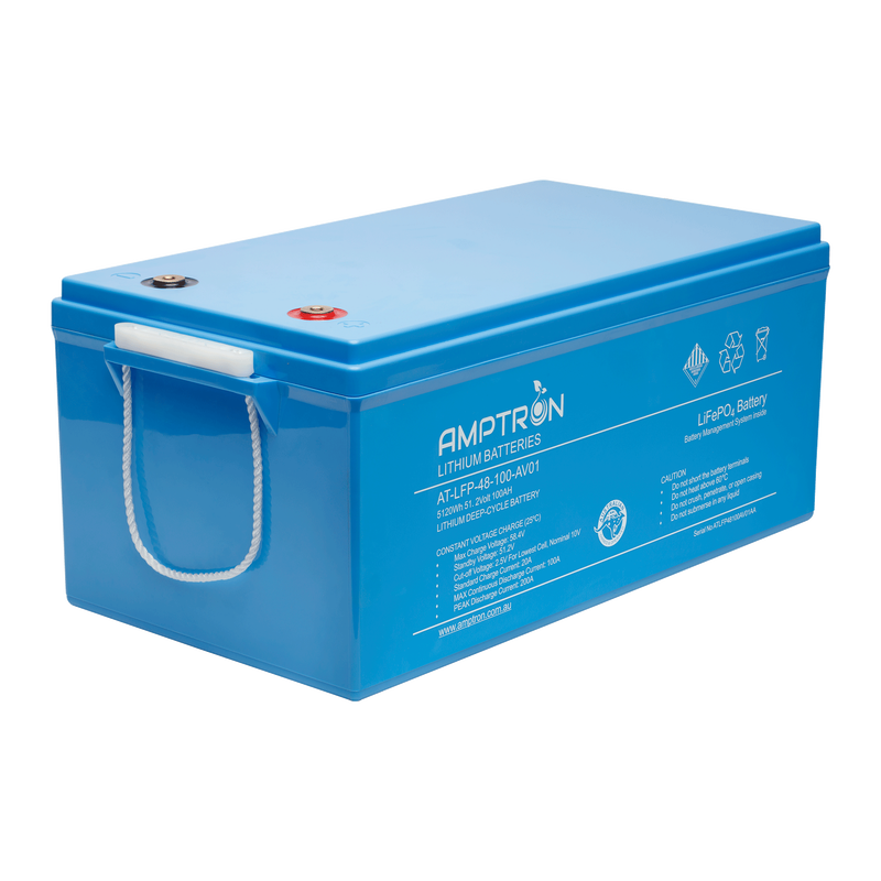 • 48 VOLT 100AH /100A BMS / 5120WH CAPACITY LIFEPO4 AMPTRON BATTERY - IP65 RATING
