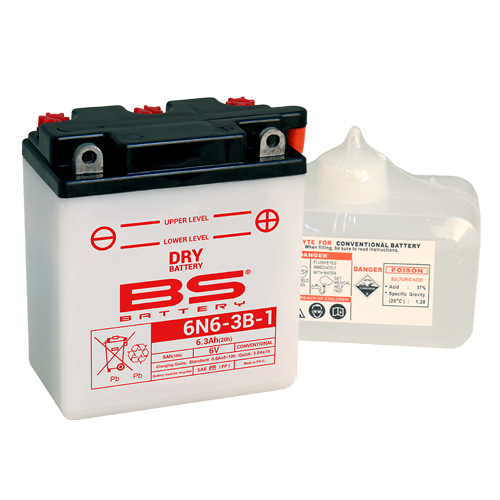 B38-6A 6V 13AH DRY CONVENTIONAL BS MOTORCYCLE BATTERY