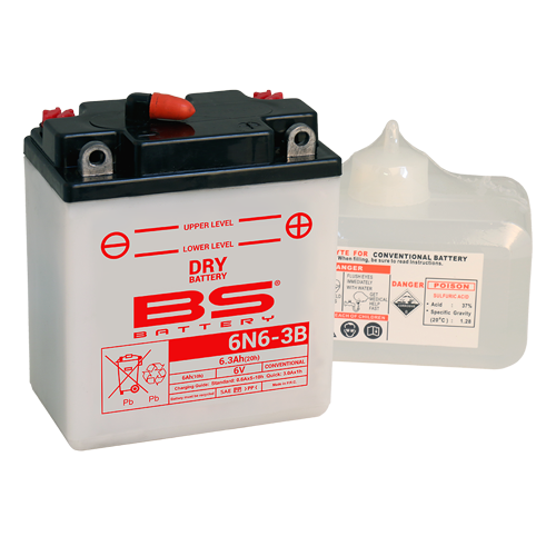 6N6-3B-1 6V 6AH DRY CONVENTIONAL BS MOTORCYCLE BATTERY - RHP