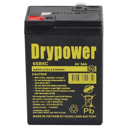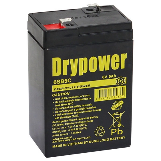 6SB5C - 6VOLT 5AH DRYPOWER CYCLIC SEALED LEAD ACID BATTERY - F1 (4.8MM SPADE)