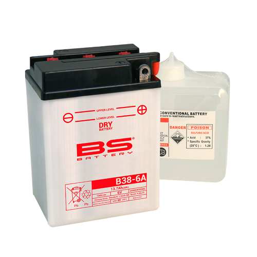 B38-6A 6V 13AH DRY CONVENTIONAL BS MOTORCYCLE BATTERY