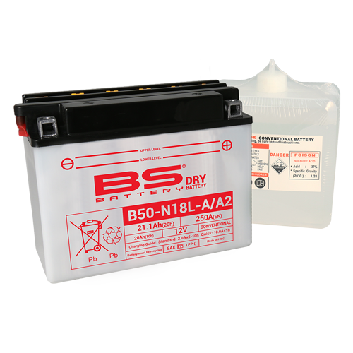 B50-N18A-A 12V 250CCA 20AH DRY CONVENTIONAL BS MOTORCYCLE BATTERY - LHP