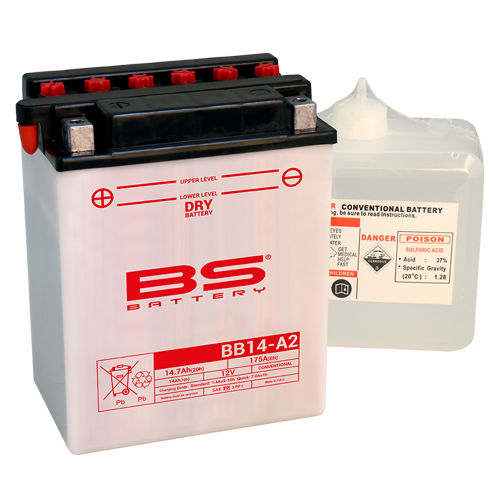 BB14-A2 12V 175CCA 14AH DRY CONVENTIONAL BS MOTORCYCLE BATTERY