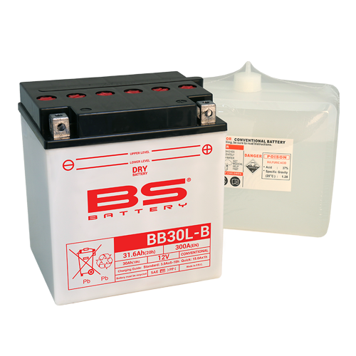 BB30L-B 12V 30AH 300CCA DRY CONVENTIONAL BS MOTORCYCLE BATTERY - RHP