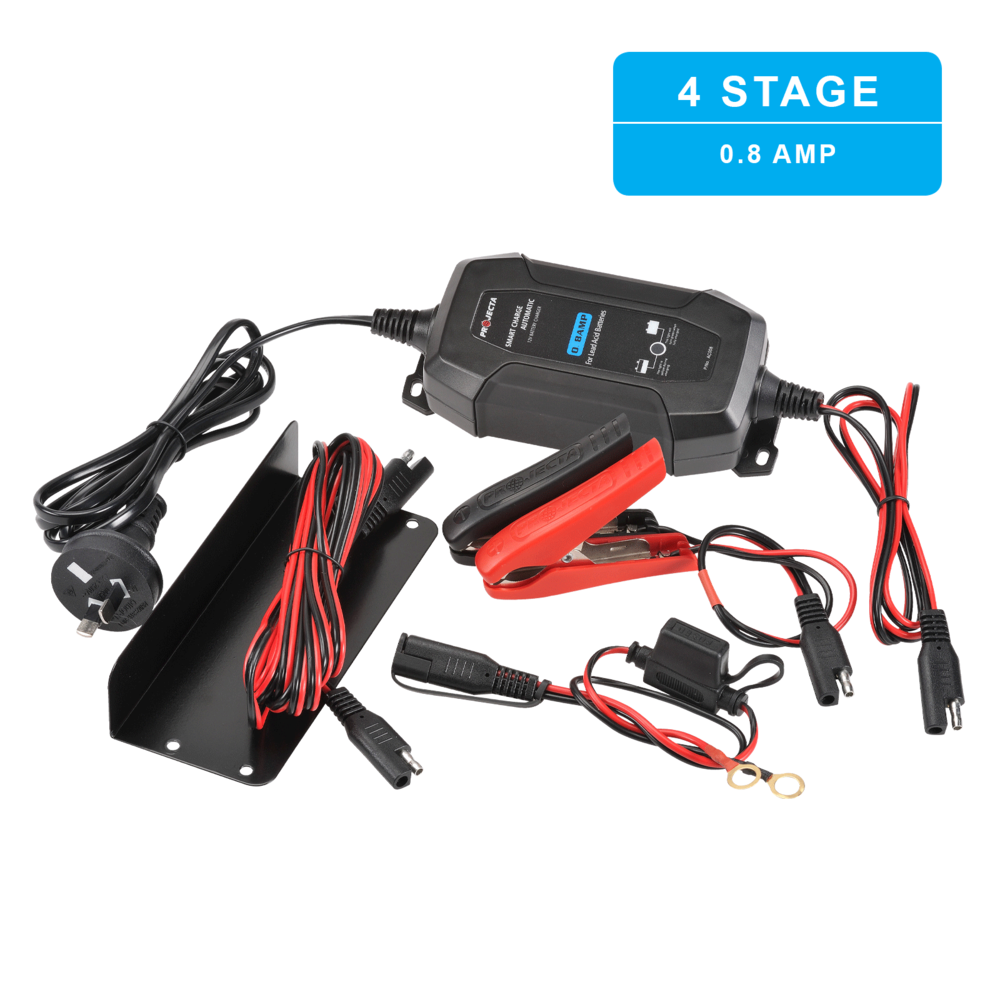 12V 0.8AMP PROJECTA CHARGE N' MAINTAIN 4 STAGE AUTOMATIC BATTERY CHARGER