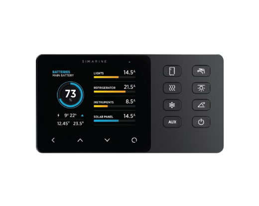 - Battery Monitoring: Supports up to 6 battery banks, providing data on voltage, state of charge, remaining ampere hours, and time to charge or discharge