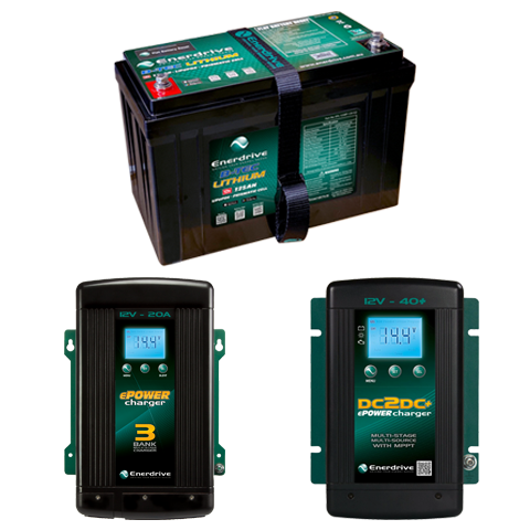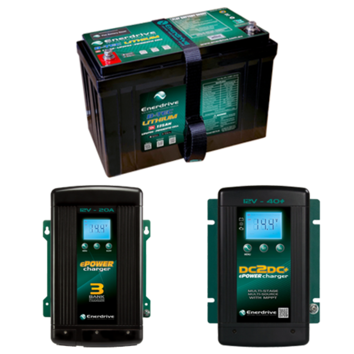 ENERDRIVE EPOWER B-TEC 12V 125AH LITHIUM BATTERY, 12V 40A DC2DC+ CHARGER & 12V 20A AC CHARGER BUNDLE