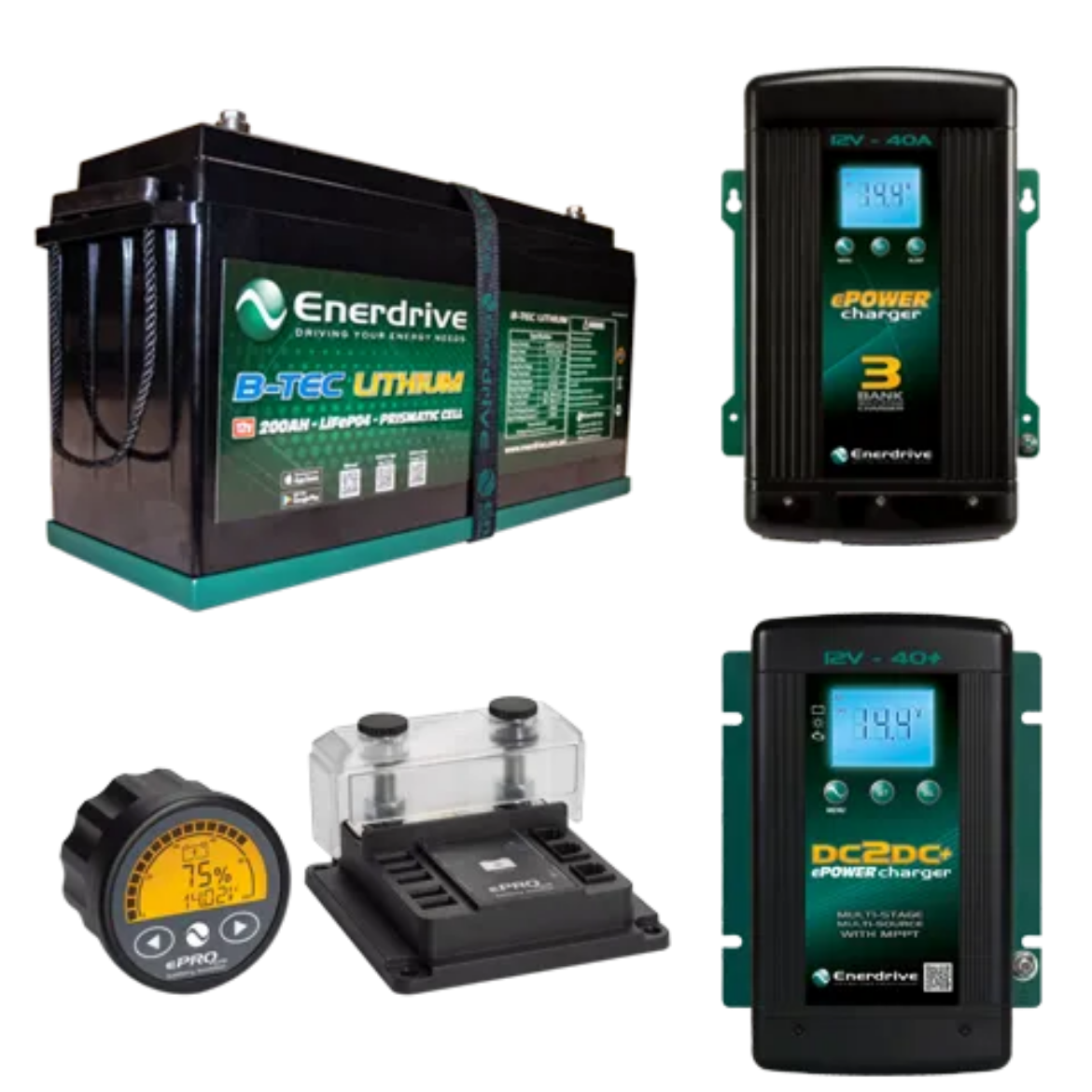 ENERDRIVE EPOWER B-TEC G2 12V 200AH LIFEPO4 BATTERY, 12V 40A DC-DC CHARGER, 12V 40A AC CHARGER & EPRO+ MONITOR BUNDLE (K-200-07)