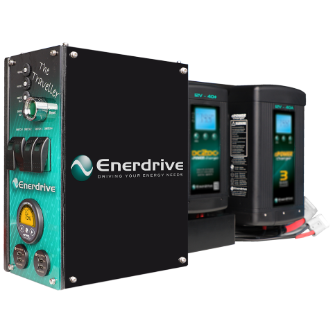 ENERDRIVE LEFT MOUNT TRAVELLER 02 SYSTEM - 40A AC CHARGER, 40A DC-DC CHARGER & SIMARINE MONITOR