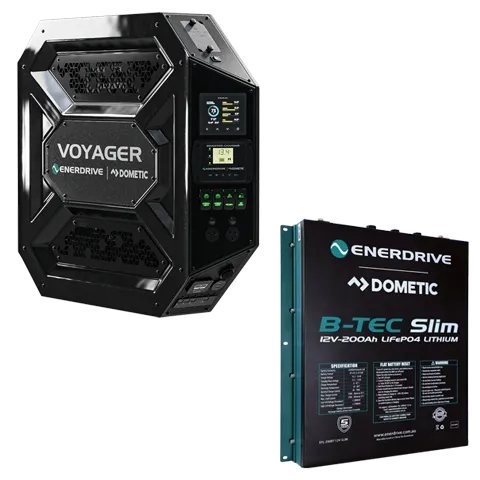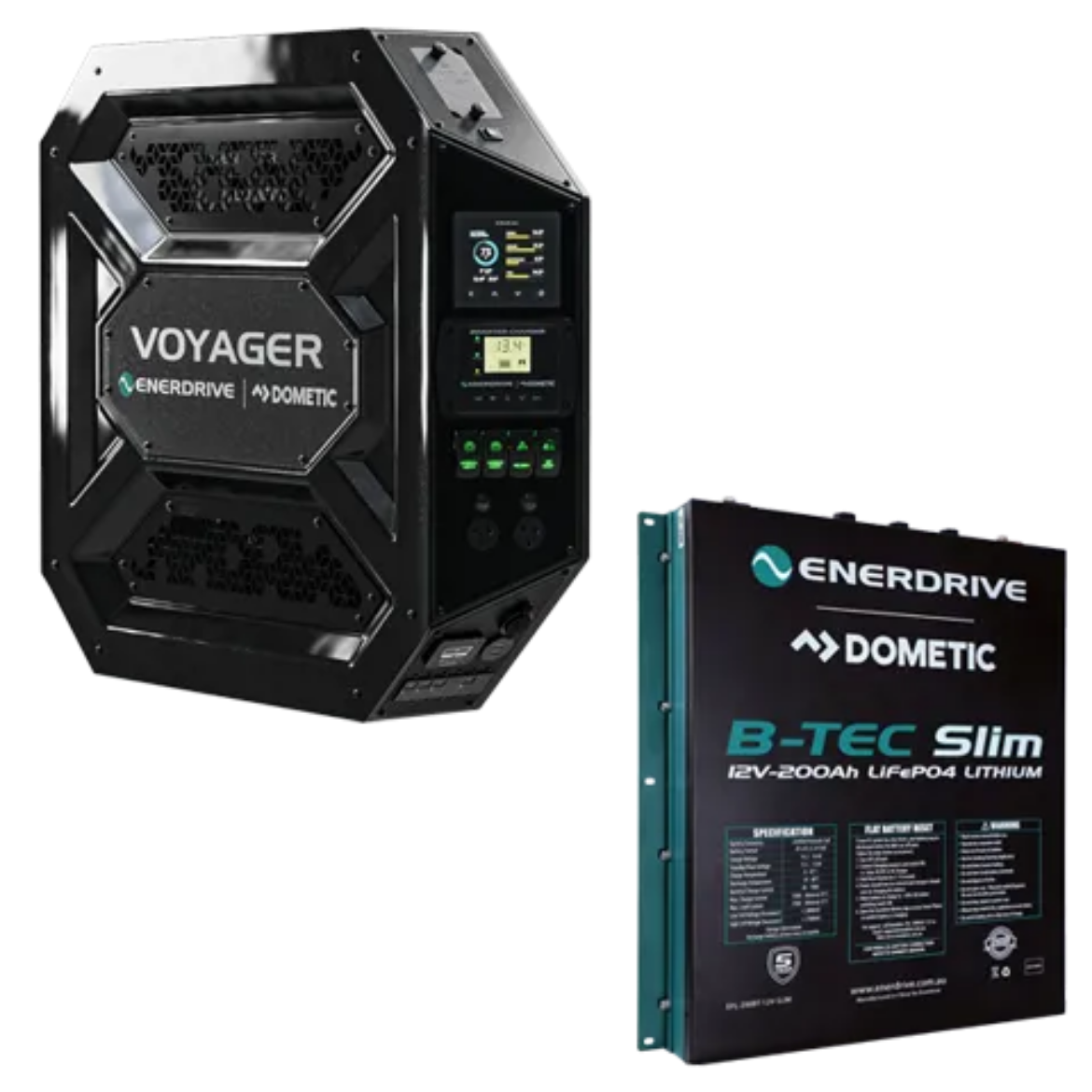 • ENERDRIVE RIGHT MOUNT VOYAGER SYSTEM 3000W INC B-TEC 200AH SLIM - IP52 RATED BATTERY