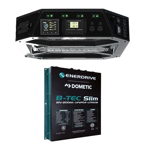 • ENERDRIVE TOP MOUNT VOYAGER SYSTEM 3000W INC B-TEC 200AH SLIM - IP52 RATED BATTERY