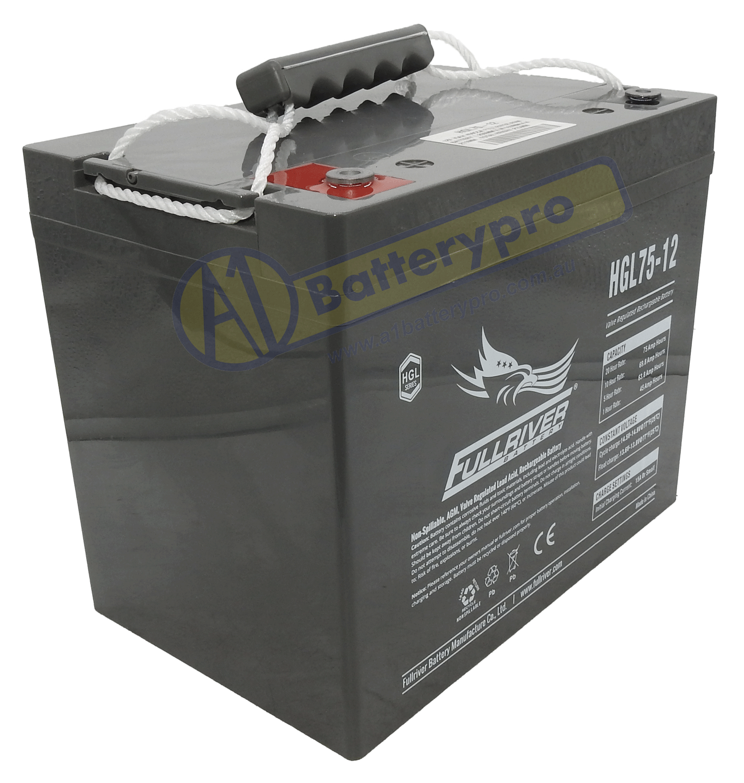 HGL75-12 - 12VOLT 75AH 450CCA FULLRIVER AGM BATTERY - ACTIVFIRE/CSIRO APPROVED