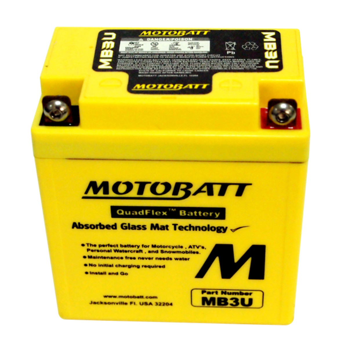 MB3U - 12VOLT 50CCA 3.8AH MOTOBATT AGM QUADFLEX BATTERY - RHP