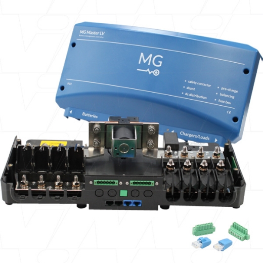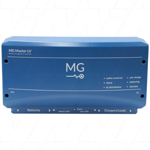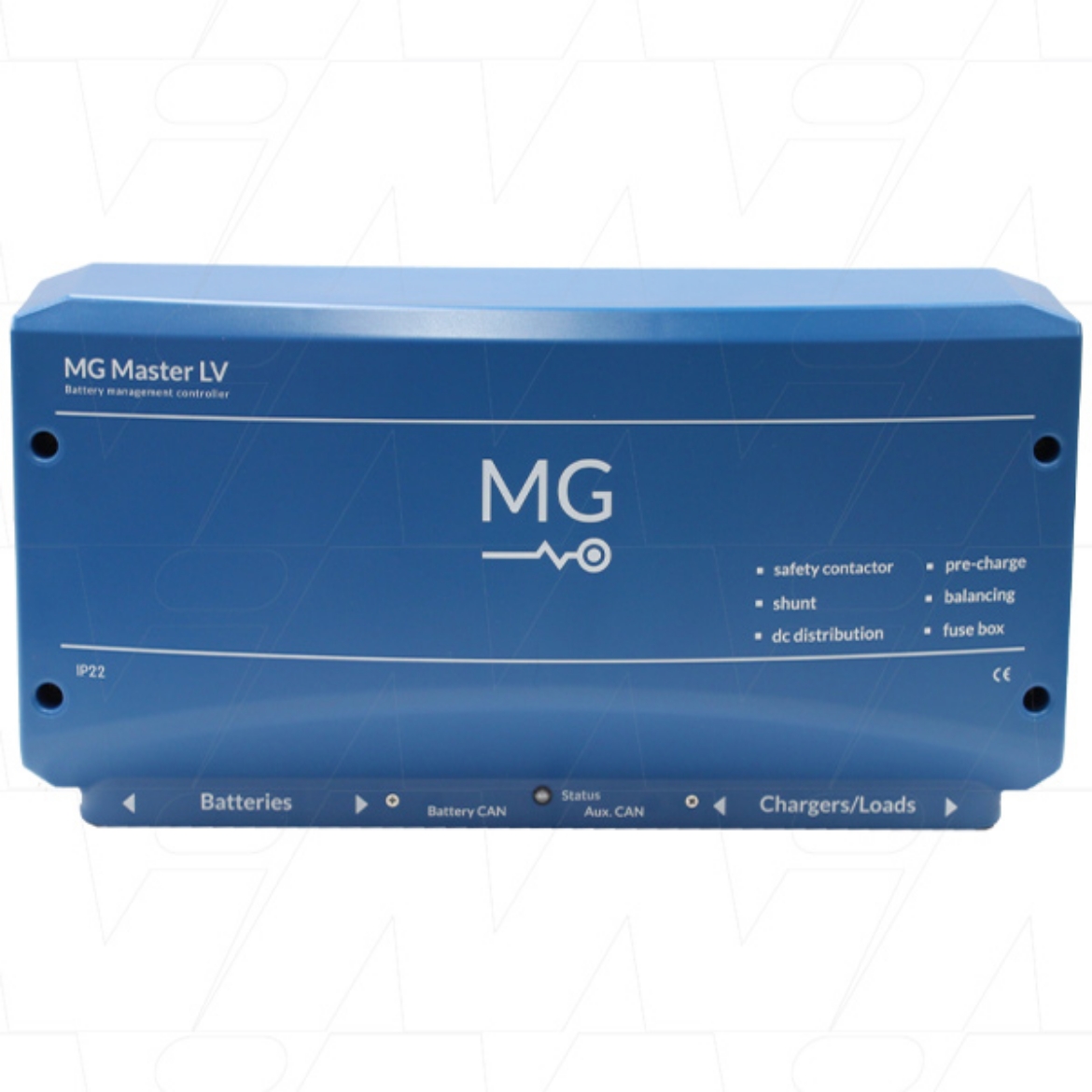 Protecting, monitoring and controlling a battery system is very important to create a safe, reliable and easy-to-use system. The MG Master LV unit of the battery system protects the connected battery modules against over-charging, over-discharging, over-temperature, under-temperature and controls the balancing of the battery cells. Besides a safety function, the Master LV monitors and tracks other important parameters to give insight in the battery status and energy consumption. The integrated DC distribution, fuse holders and safety contactor make it easy to install and require less cables and external equipment.