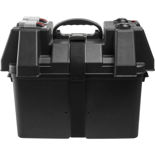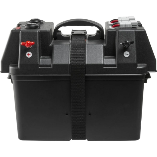 Picture of POWERED BATTERY BOX WITH 2 x FUSE PROTECTED 50A ANDERSON PLUGS, 12V CIGARETTE SOCKET, DUAL USB PORT & LED VOLTAGE INDICATOR